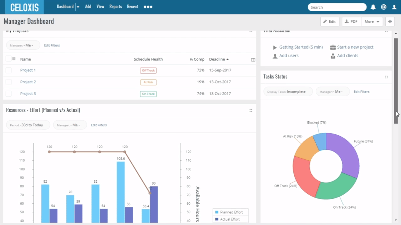 - Multiple data visualization options like Gantt Charts, trend lines and more.