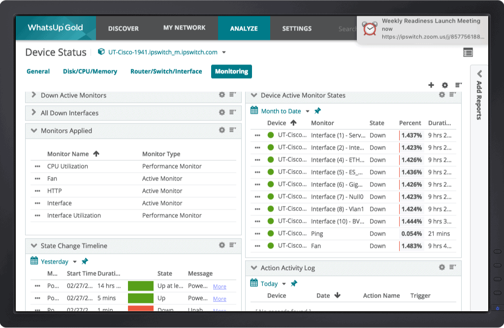 As part of the Ipswitch family of tools and services, WhatsUp Gold 2019 is the latest version of their all-inclusive network monitoring solution. This powerful software features a rich variety of modules for alerting, reporting and of course, monitoring every single aspect of IT infrastructure.