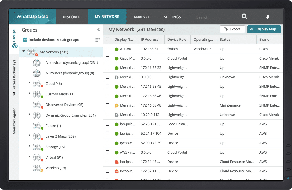 You can now Monitoring, Map and Automatically Scan and Discover Azure and AWS Servers within Whatsup Gold 2019. Using Native API, you can setup Alerts and Reports, Monitor and check every Metric of your Cloud Hosting solution.