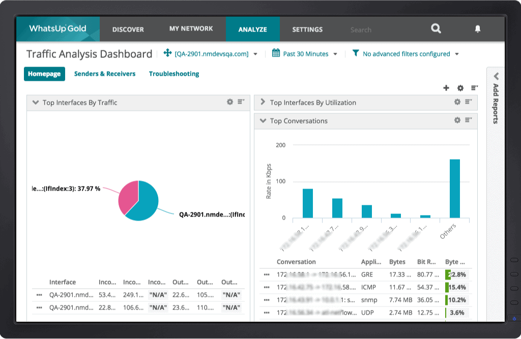 This is a great little tool that many other Network Monitoring software programs have started to implement to get a more granular look into your traffic on your network. This feature uses Network Traffic analysis to breakdown and identify where traffic is going and coming from on your network.